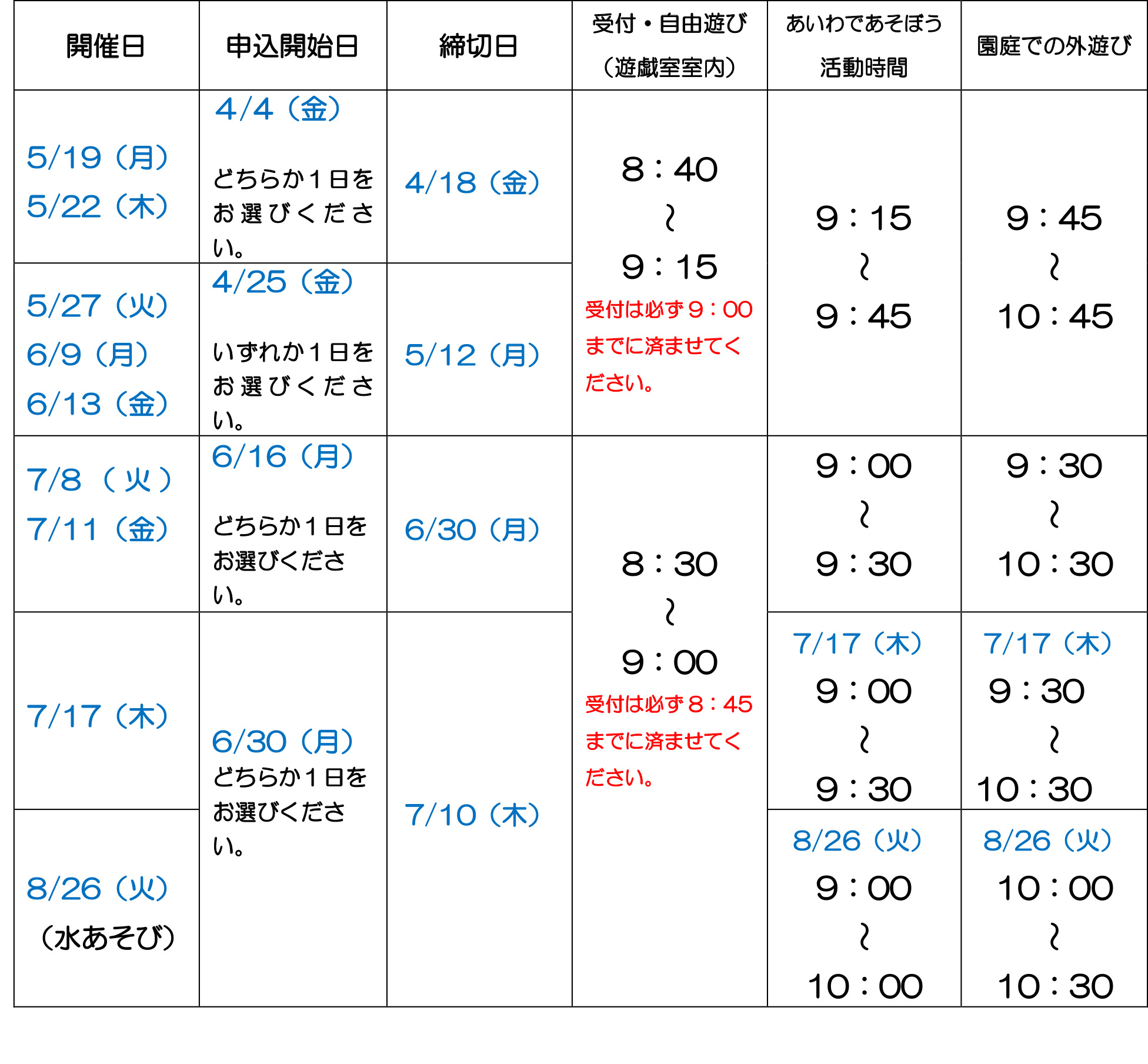 令和7年度あいわであそぼう表